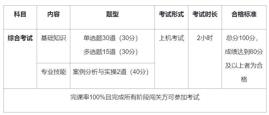 基础知识、专业技能成绩分别达到60分,为评定成绩合格。