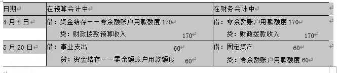 5 月20日,在财务会计中,借记固定资产60万元,贷记零余额账户用款额度60万元