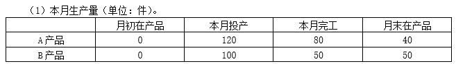 A在产品40件,全部处于智能制造阶段,尚未进入手工加工阶段,平均完成智能制造作业的50%;B在产品50件,智能制造作业全部完成,手工加工作业平均完成60%。