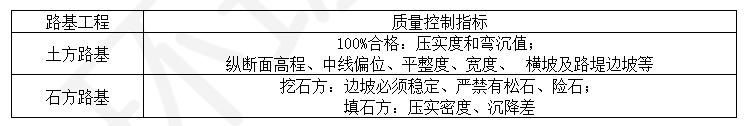 路基工程质量控制指标: