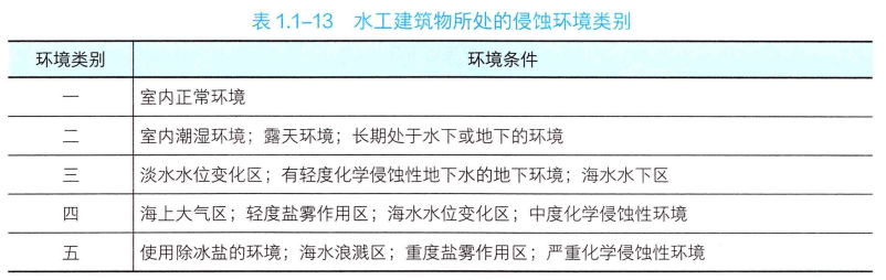 【内容考查】本题考查的是耐久性设计要求【选项分析】三类环境:淡水水位变化区;有轻度化学侵蚀性地下水的地下环境;海水水下区。