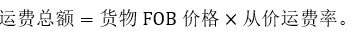 本题考点为班轮运费由基本运费和附加费两部分构成。从价运费通常按船上交货(FOB价)计算,运费公式为:。