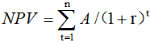 式中,t表示现金流的持续时间,A表示每年的现金流量,r是折现率。