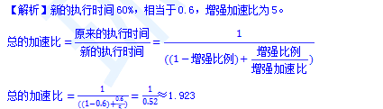 阿姆达尔(Amdahl)定律量化定义了通过改进系统中某个组件的性能,使系统整体性能提高的程度。假设某一功能的处理时间为整个系统运行时间的60%,若使该功能的处理速度提高至原来的5倍,则根据阿姆达尔定律,整个系统的处理速度可提高至原来的( )倍。