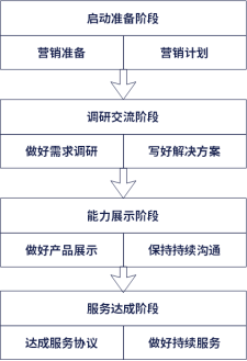调研交流阶段→启动准备阶段→能力展示阶段→服务达成阶段