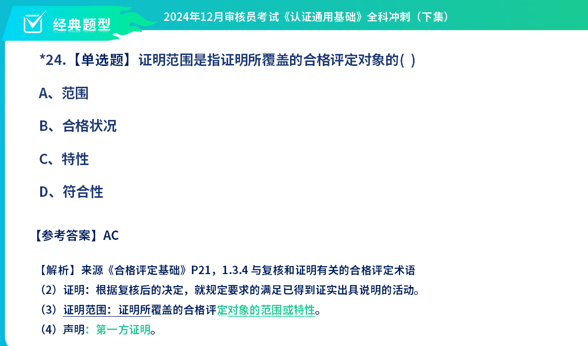 (3)证明范围:证明所覆盖的合格评定对象的范围或特性。