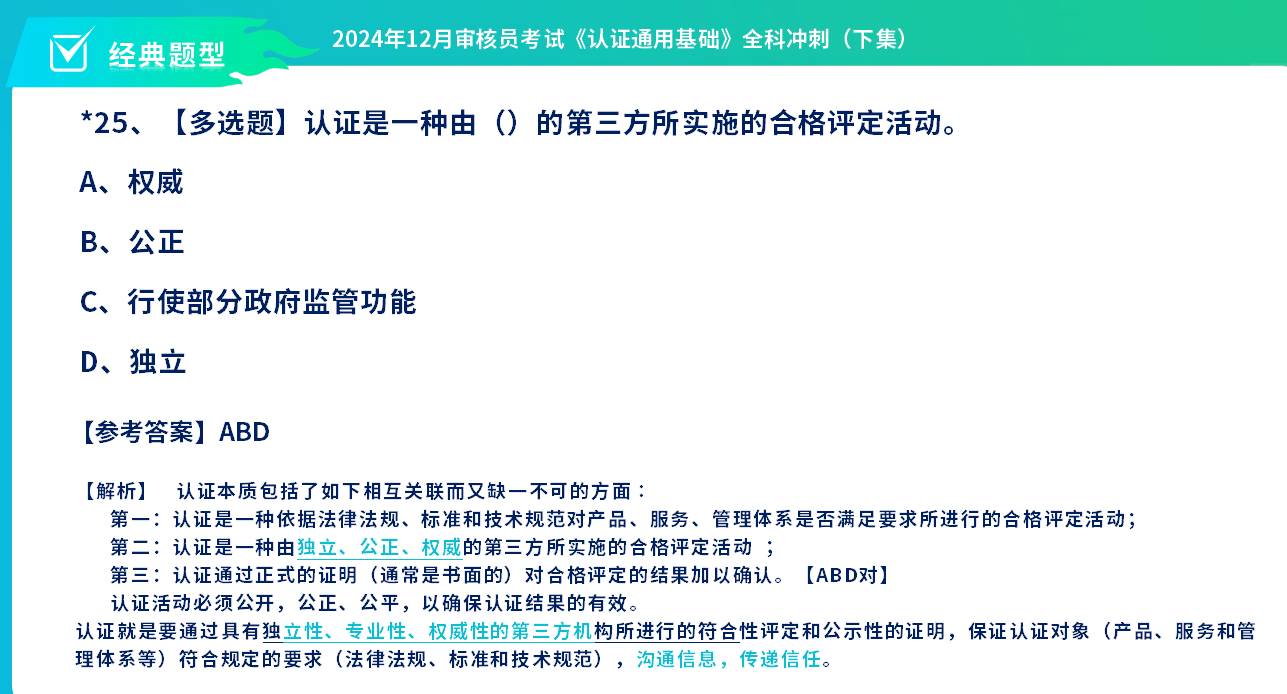 第二:认证是一种由独立、公正、权威的第三方所实施的合格评定活动;