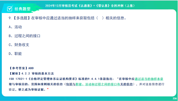 在审核中应通过适当的抽样来获取包括( )相关的信息。