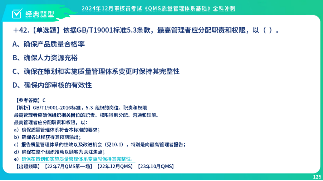【出题频率】【22年7月QMS第一场】【22年12月QMS】【23年10月QMS】【24年12月QMS】