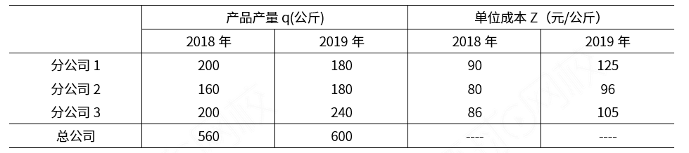 与 2018 年相比,2019 年三个分公司的产品产量平均增长了( )。(单选题)
