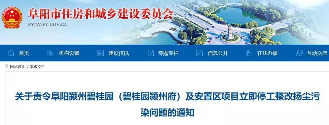 另外,在阜阳市住建委网站可见,近两日,当地多个项目都被停工整改!原因竟都是扬尘污染问题!