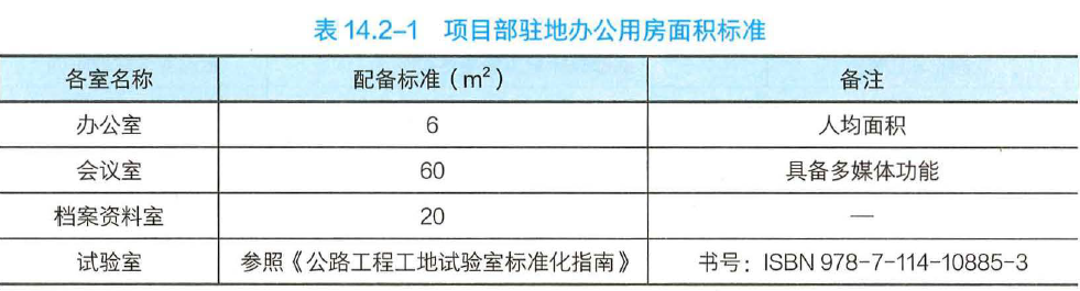 【选项分析】项目部驻地办公用房面积应满足办公需要,一般不低于表得规定。