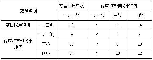 民用建筑之间的防火间距(单位:m)