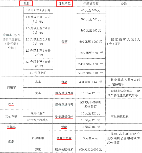 车船税计税单位包括“每辆”“整备质量每吨”“净吨位每吨”“艇身长度每米”
