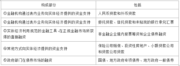考查第18章。社会融资规模统计指标主要由五个部分构成: