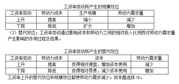 (1)规模效应;工资率变动首先通过直接作用于生产规模或产出规模,从而进一步影响劳动力需求量的作用过程及其结果。