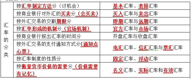 (1)根据汇率的制定方法,汇率可以分为:基本汇率与套算汇率;