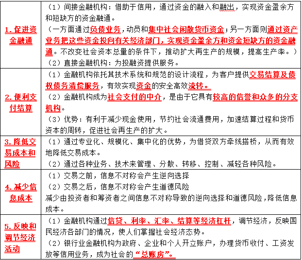 【解析】金融机构的功能包括促进资金融通、便利支付结算、降低交易成本和风险、减少信息成本、反映和调节经济活动。