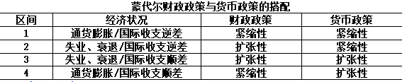 蒙代尔财政政策与货币政策的搭配: