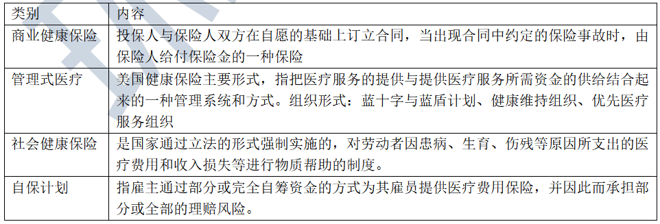 管理式医疗是指把医疗服务的提供与提供医疗服务所需资金的供给结合起来的一种管理系统和方式,是美国健康保险主要采用的形式。其组织形式有蓝十字与蓝盾计划、健康维持组织、优先医疗服务组织等。