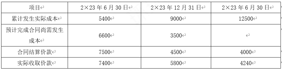 甲公司为大型建筑施工公司,2×23年1月1日,甲公司与乙公司签订一项办公楼建造工程合同。合同约定,该工程造价为16 000万元,工程期限为1.5年,预计2×24年6月30日竣工;预计可能发生的总成本为12 000万元;甲公司负责工程的施工及全面管理,乙公司按照第三方工程监理公司确认的工程完工量,每半年与甲公司结算一次。2×23年12月31日,因建筑材料涨价等原因,甲公司预计合同总成本将调整为12 500万元。每年发生的成本中60%为建筑材料费用,其余为工资薪金支出。相关资料如下: