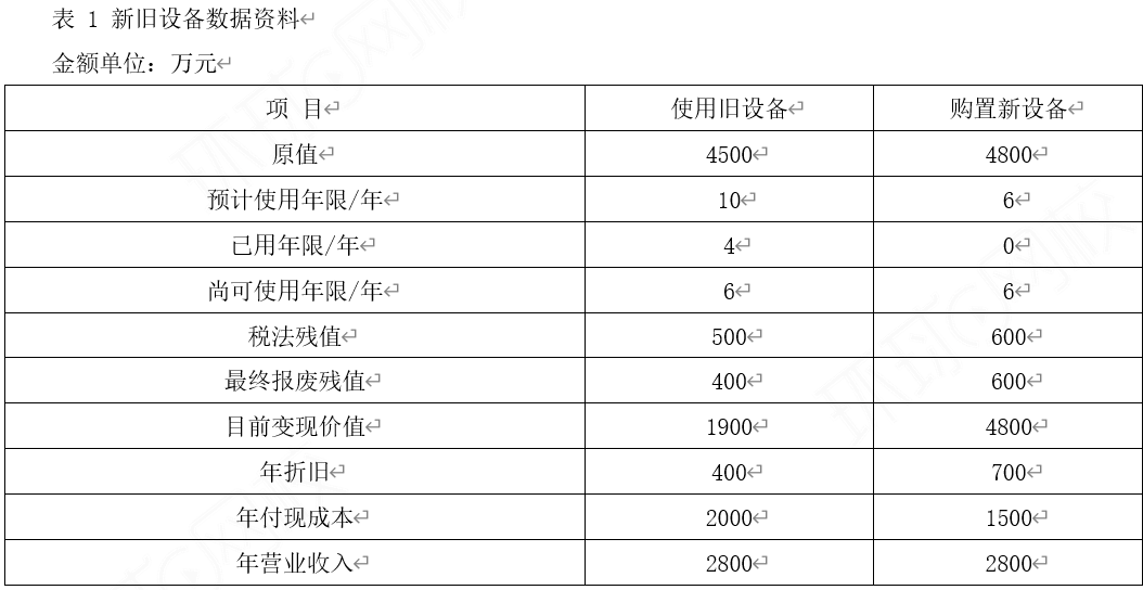 资料一:新旧设备数据资料如表1所示。