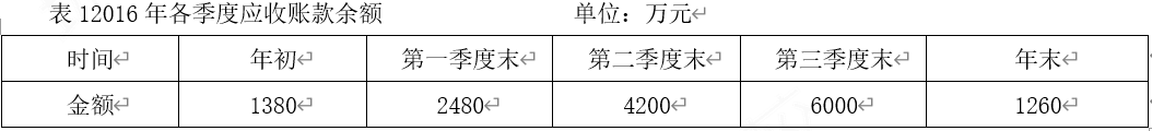 资料一:由于戊公司产品生产和销售存在季节性,应收账款余额在各季度的波动幅度很大,其全年应收账款平均余额的计算公式确定为:应收账款平均余额=年初余额÷8+第一季度末余额÷4+第二季度末余额÷4+第三季度末余额÷4+年末余额÷8,公司 2016年各季度应收账款余额如表1所示。