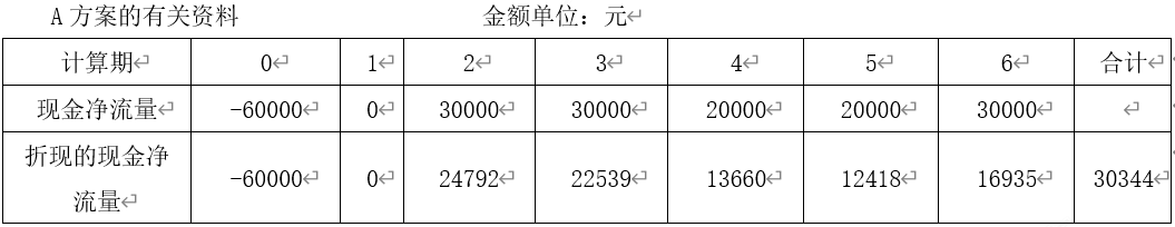 (2)B 方案的项目寿命期为8年,包括投资期的静态回收期为3.5年,净现值为 50000元,年金净流量为9370元。