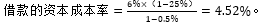 某公司取得5年期长期借款500万元,年利率6%,每年付息一次,到期一次还本,筹资费用率为0.5%,企业所得税税率为25%。不考虑货币时间价值,该借款的资本成本率是( )。