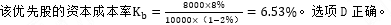某公司发行优先股,面值总额为8000万元,年股息率为8%,股息不可税前抵扣。发行价格为10000万元,发行费用占发行价格的2%,则该优先股的资本成本率为( )。