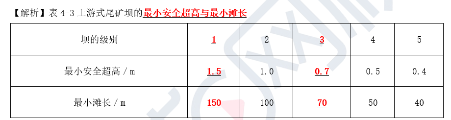 表4-3上游式尾矿坝的最小安全超高与最小滩长